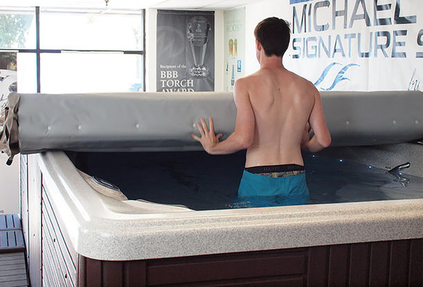 The E2E Cover ease-of-use design enables one person to roll the cover off the swim spa in less than 60 seconds.